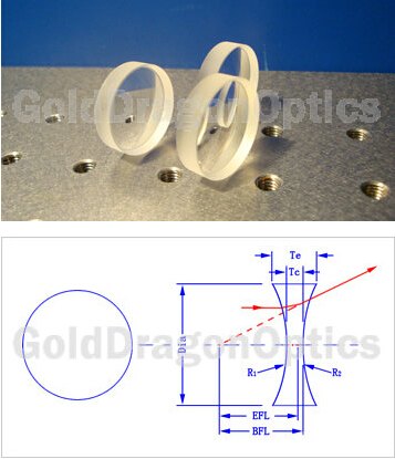 K9雙凹球面透鏡 (尺寸及鍍膜可按用戶需求定制)單位(mm)