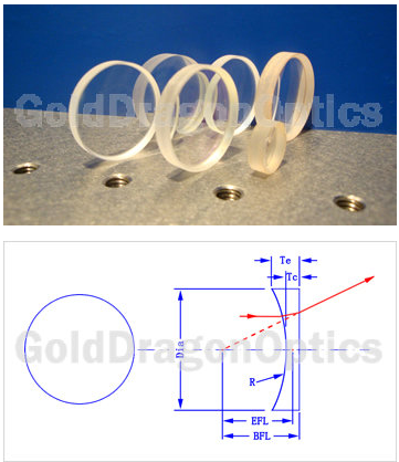氟化鈣(CaF2)平凹球面透鏡 (尺寸及鍍膜可按用戶需求定制)單位(mm)